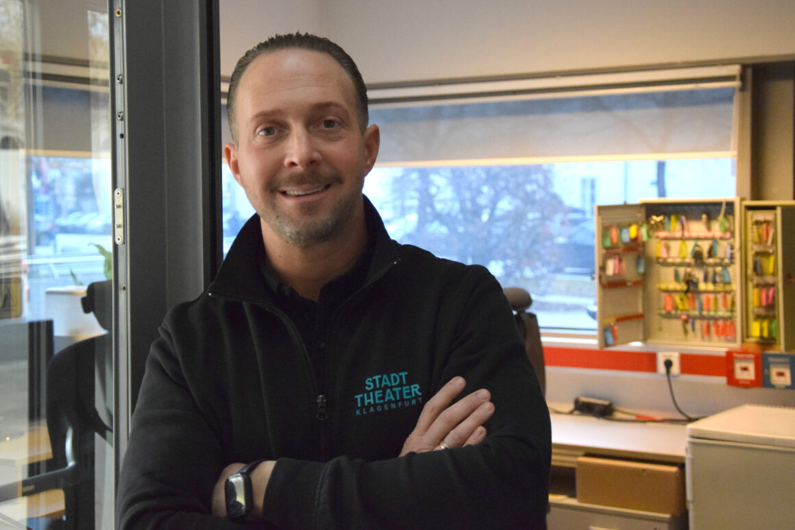 Seit 2013 ist Rene Türk am Haus beschäftigt und ein verlässlicher Ansprechpartner im Empfangs- und Sicherheitsbereich. Zu seinem Aufgaben gehört u. a. die Sicherstellung eines reibungslosen Ablaufs im Empfangs- und Sicherheitsbereich, die Zutrittskontrolle, die Post- und Paketannahme sowie die Bedienung und Überwachung der Brandschutz- und Alarmanlagen. »Das Stadttheater ist für mich nicht nur ein Arbeitsplatz, sondern ein Ort, den ich mit ganzem Herzen unterstütze. Ich kenne und schätze die Kolleginnen und Kollegen aller Abteilungen sehr und lege großen Wert auf ein respektvolles und vertrauensvolles Miteinander.« Seit 2025 leitet der gebürtige Steirer das Team der Portiere und ist für die Organisation und Koordination der Portierloge verantwortlich.